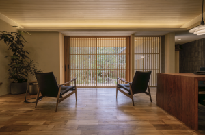 大きな窓からは、季節の移ろいを感じられる庭の緑を眺めることができます。また、窓を格子に切り替えることも可能で、柔らかな光が美しい陰影を作り出し、室内に和の趣をプラスします。