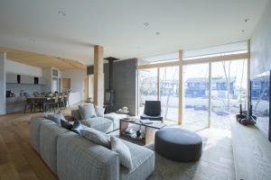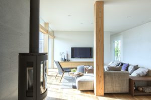 リビングには薪ストーブを配置し、冬には木の家ならではの柔らかな暖かさを感じることができます。